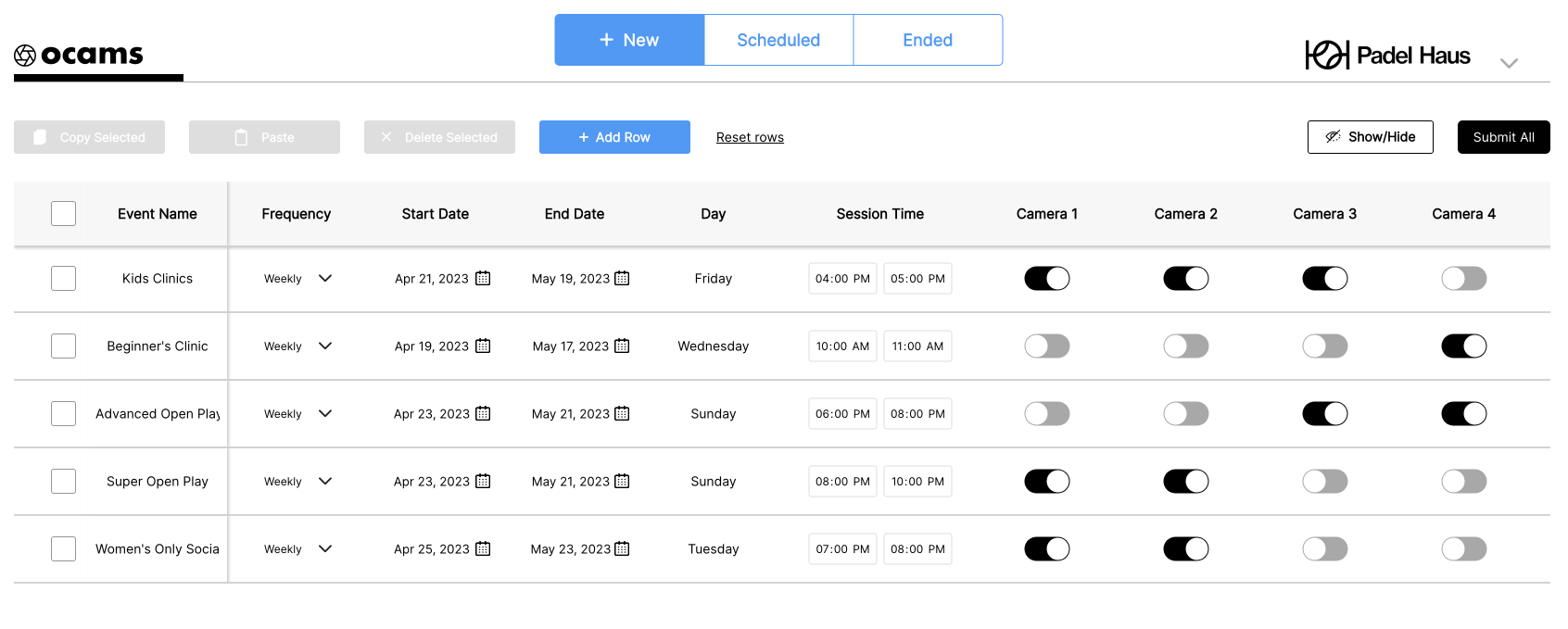 Our live stream manager is super simple so anyone at the club can set up one or multiple live streams at once. No technical knowledge necessary. Simply input the start time, end time, and court number. There is also the option to set streams to recur daily, weekly, or monthly.